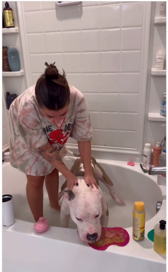 And for one new dog mom, her first bath with her rescue Pit Bull was nothing short of that kind of moment.