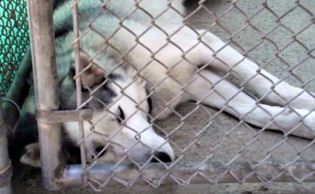 His ribs pressed against his fur. His eyes — dull, distant, broken. He didn’t wag his tail or bark.