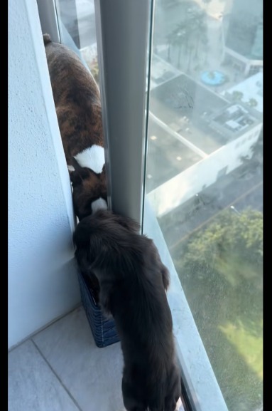 Meet Lucy, a Miniature Longhaired Dachshund puppy living in Fort Lauderdale, Florida, who’s turned heads by falling head over paws for her “big boy” friend in the apartment.