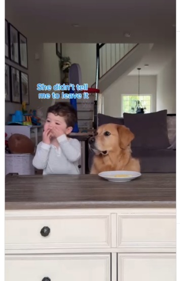 That’s exactly what happened when Beau, a Golden Retriever, and his toddler brother, Frankie, decided to stage a snack-time heist that has the internet laughing out loud.