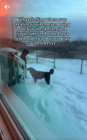 Because the video pairs the dog’s high-energy zoomies with the quieter context of a loving home, the contrast makes it even more impactful. Instead of shelter walls or uncertainty, the setting is filled with laughter, fresh snow and a sense of family that surrounds the dog with comfort.