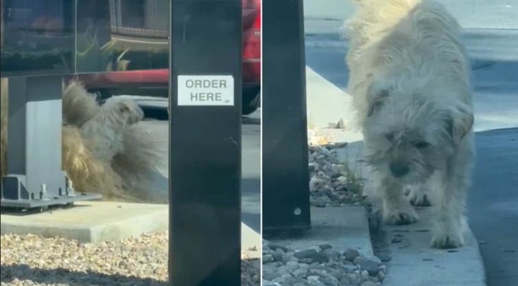 People ordered burgers, fries, and sweet tea while this little dog waited for something far more basic than a combo meal. He waited for kindness.