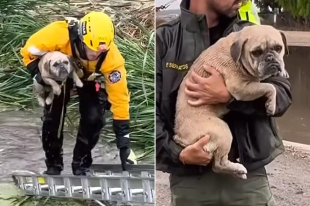 No one knew how long he had been there, trapped by the floodwaters, paws scraping against debris as the current threatened to pull him under.