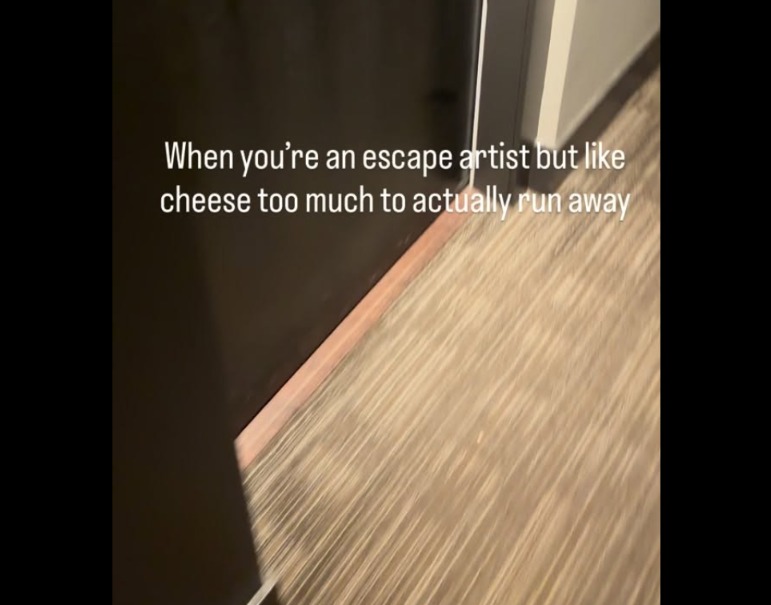 Text over the clip summed it up perfectly: “When you’re an escape artist but like cheese too much to actually run away.”