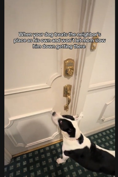 As captured on TikTok by his mom (@oh_so_curious_george), George transformed from a chill apartment pup into a full-blown speedster the second his paws hit the hallway.