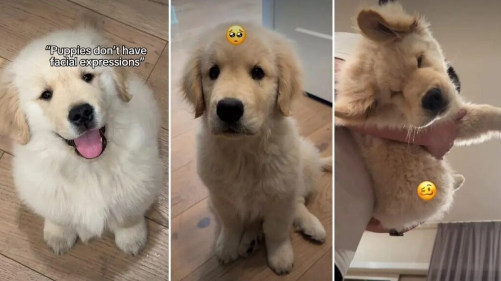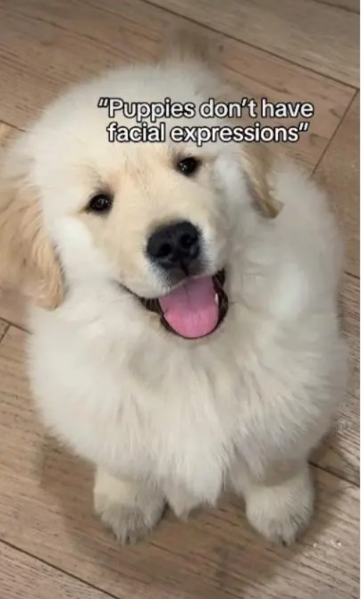 The video, shared by the Instagram account @maui_thegoldenpup, opens with a bold on-screen caption that reflects the skeptics’ view: “Puppies don’t have facial expressions.”