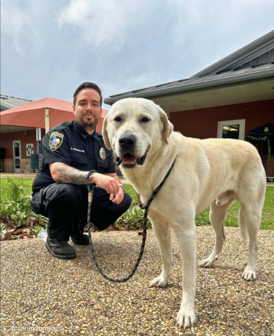 Officer Edwards walked toward him — steady, calm, urgent. He noticed the leash anchored with a nail and realized every second counted.