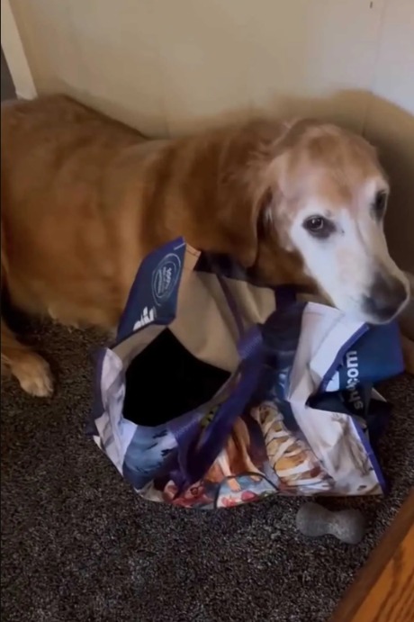 Meet Duke, a magnificent 10-year-old rescue Golden Retriever who has become an internet sensation for his peculiar, yet hilarious, habit of stealing random household items and taking them straight to bed with him.