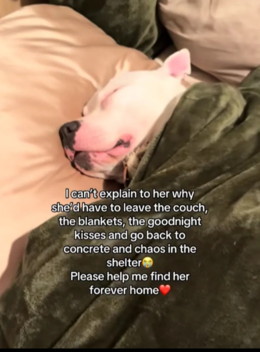 Despite the bond they formed, Henry couldn’t adopt Doby permanently. Knowing that the foster period would end soon, she prepared herself for a difficult farewell. She captured a tender moment on TikTok: Doby snoozing on the couch, enveloped in blankets, a serene picture of contentment.