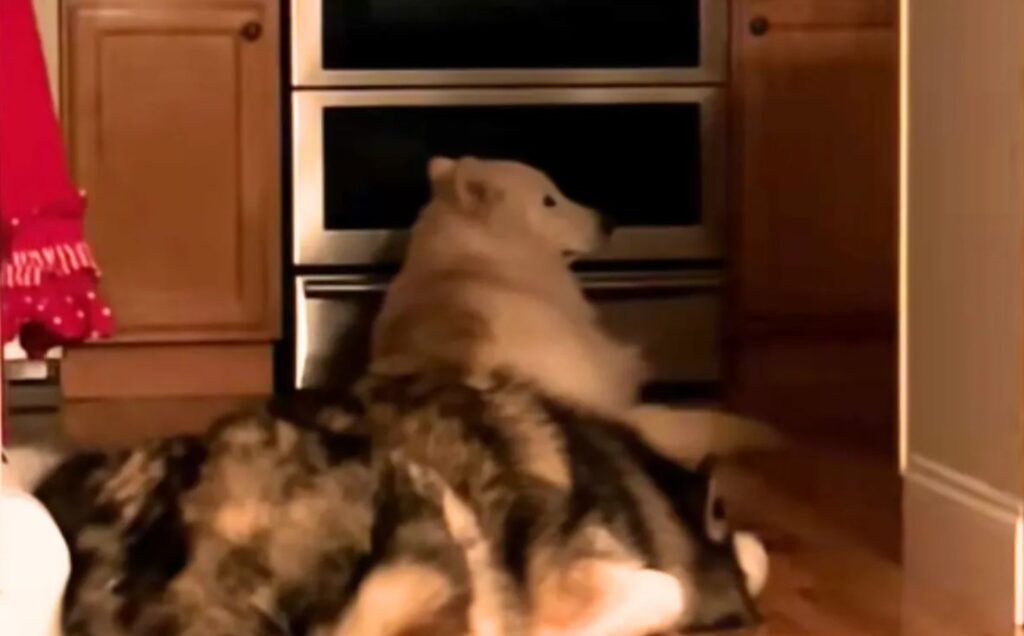 But even with Shawna’s careful guidance, Falkor developed a very specific and hilarious fixation — the kitchen oven. It didn’t matter whether it was on or off, or whether anyone was cooking: Falkor simply loved being near the oven.