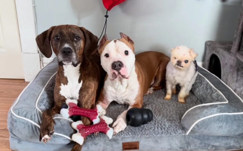 He spent his days with his new canine siblings — the energetic Nitro and Nova — and feline siblings — Tuna and Mama — sprawled across beds, receiving belly rubs, gentle pats, and slow, patient love.