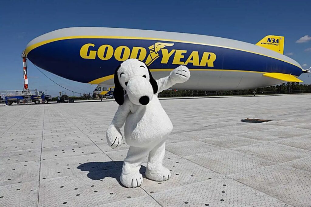 The epic journey took place on October 1st, marking a celebration of two major milestones: the 75th anniversary of the Peanuts comic strip and the 100th anniversary of the Goodyear blimp.