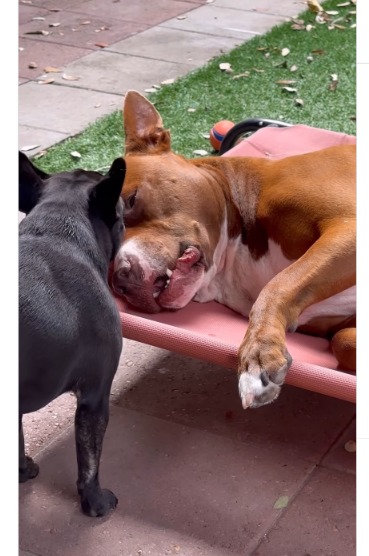That’s exactly how you’ll feel watching Baloo the Bully and his girlfriend Pinky the Frenchie hanging out, being best friends, and showing the world what dog-love looks like.