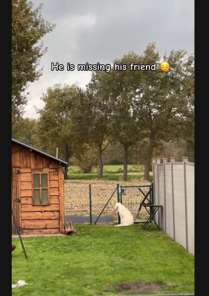 Odies friend passed away 2 weeks ago and waitikg every day at the fence 💔😔 #odie #viral #odiethegoldie #goldenretriever #fyp