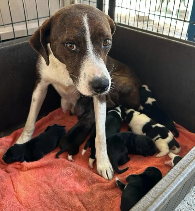 Ernesto’s story didn’t start in a yoga studio. He had arrived at One Tail at a Time after being found abandoned on the side of a road with his mom and siblings in Arkansas — a reminder of how many young dogs need stable, loving homes.