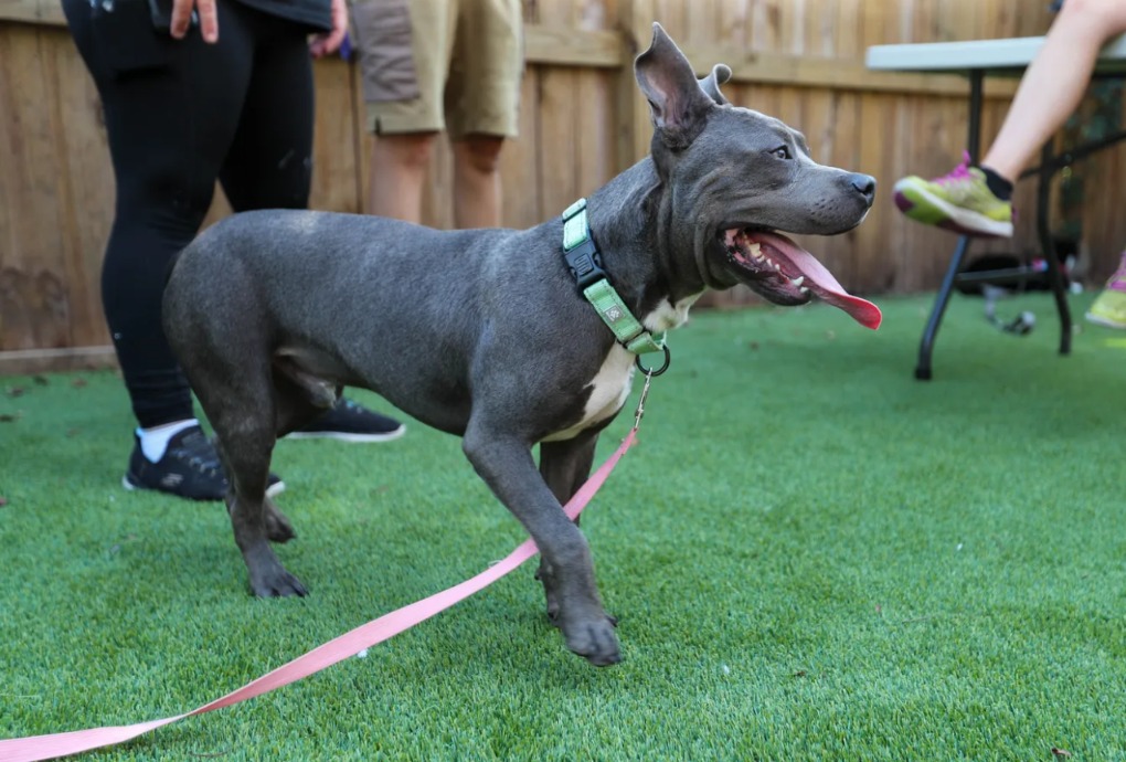 But then something extraordinary happened — one gray pit bull bolted forward, sprinting out of his kennel like he was running for his life.