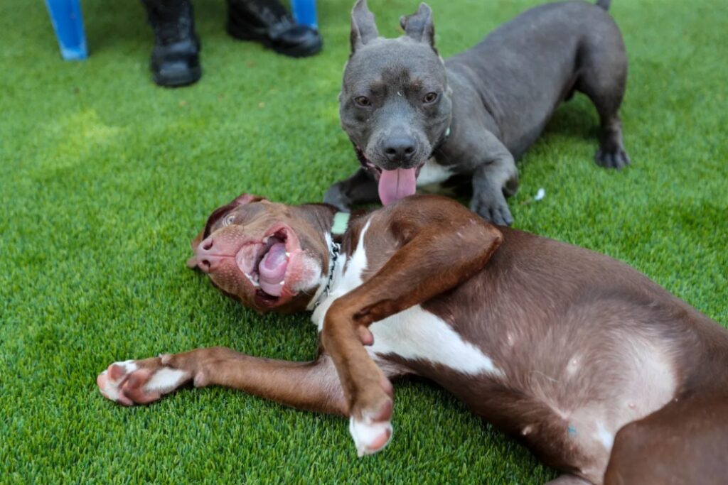 Local news outlets picked up the story. Photos showed the transformation — dogs once labeled “unadoptable” now sprawled in the grass, tongues out, eyes bright.