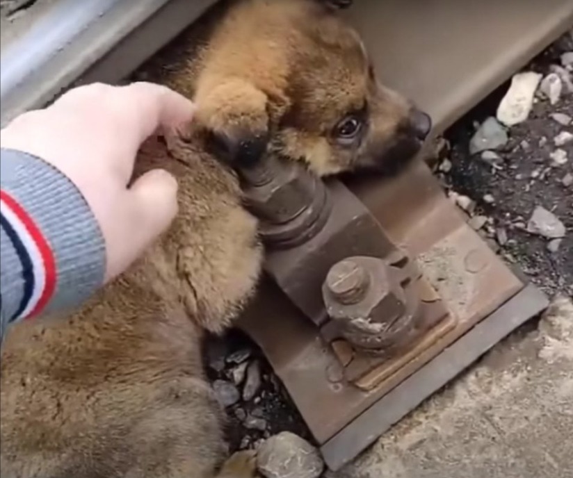 When they leaned closer, their hearts cracked: there lay a terrified little puppy, wedged under the rails, broken yet clinging to life.