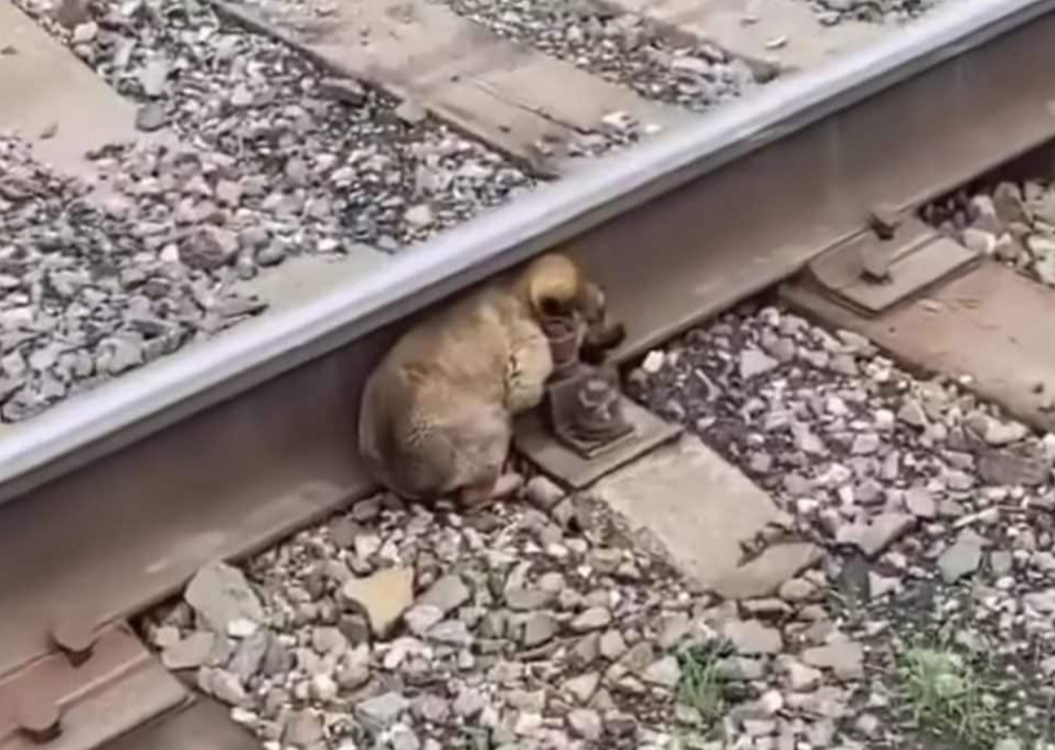 It was an ordinary day — just passersby near a railway track — until someone saw movement. Something curled up, small, still.