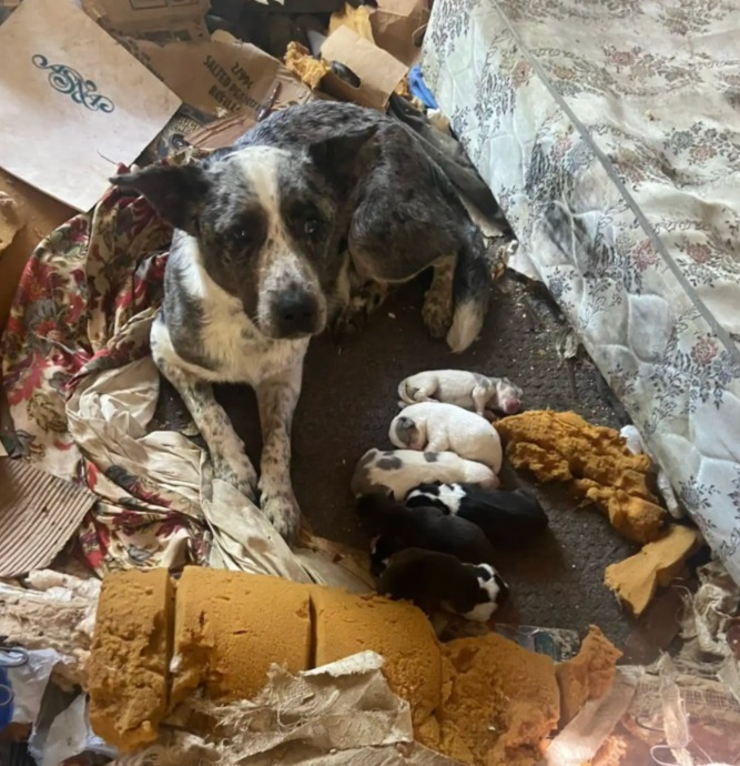 When she reached the dilapidated house and stepped inside, what she found was both heartbreaking and inspiring. In a corner surrounded by debris and garbage lay six tiny puppies, huddled together for warmth and survival.
