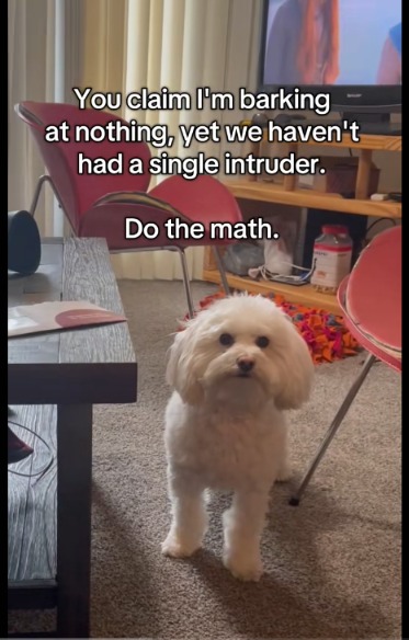 Here’s the story. Someone filmed a Maltese barking and slapped on a caption that basically shut the critics up cold.